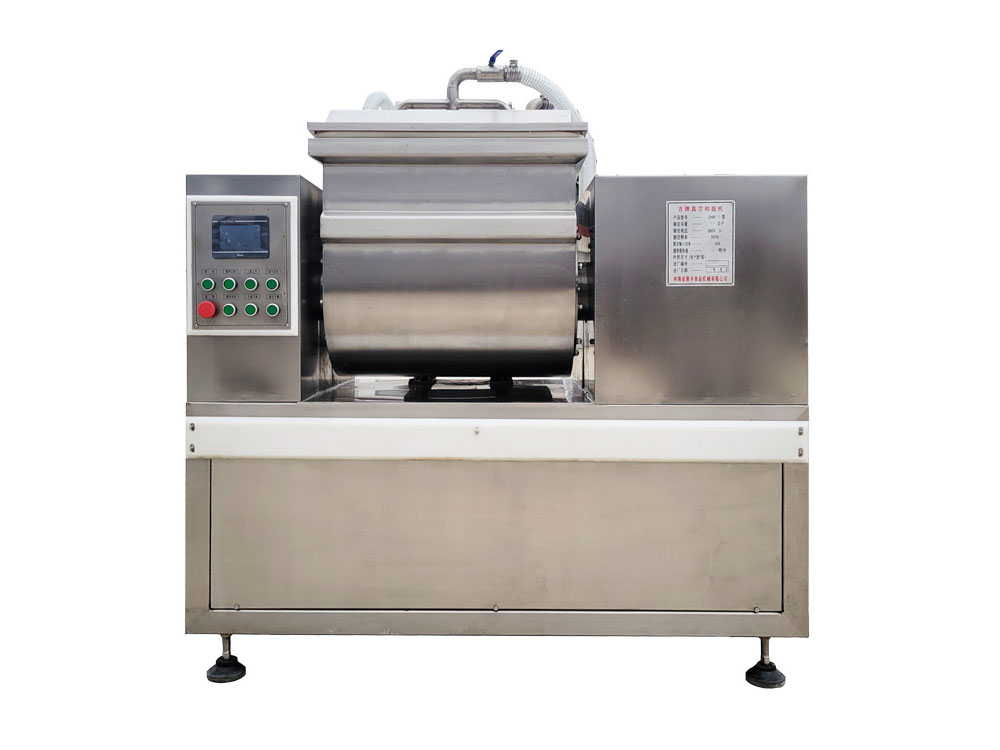 →臥式真空和面機(jī)系列  →型號(hào)50/75/100/150/200/300型  →功能  主要用來和制餃子皮、餛飩皮、鮮食面、水煮面、掛面等,若更換攪拌器,可適用于速凍行業(yè)的各種面食制品的加工?!  厣 ?、配備智能觸控顯示屏,參數(shù)自由設(shè)定,可手動(dòng)攪拌、可一鍵攪拌。并可根據(jù)工藝設(shè)定和面時(shí)間和真空度?! ?、設(shè)備由PLC控制,可實(shí)現(xiàn)自動(dòng)起蓋、自動(dòng)計(jì)量加水、自動(dòng)翻斗、自動(dòng)進(jìn)粉、抽真空和面(拌粉)、自動(dòng)排面功能。  3、獨(dú)特的密封結(jié)構(gòu),有效防止面團(tuán)受到污染,進(jìn)一步提高食品安全?! ?、和面過程在真空負(fù)壓下進(jìn)行,使面粉中的蛋白質(zhì)在短時(shí)間、充分的吸收水分,形成面筋網(wǎng)絡(luò),從而使面團(tuán)外表光滑、內(nèi)部結(jié)構(gòu)均勻,透明度高、口感好?! ?、可定制面斗冷卻系統(tǒng),使成品面團(tuán)溫度恒定,確保批量生產(chǎn)的產(chǎn)品質(zhì)量穩(wěn)定?! ?、設(shè)備主體采用不銹鋼制造,符合現(xiàn)行有關(guān)食品衛(wèi)生標(biāo)準(zhǔn)?!  饕夹g(shù)參數(shù)產(chǎn)品型號(hào)額定容量(kg)攪拌轉(zhuǎn)速(rpm)主電機(jī)(kW)副電(kW)外形尺寸(長(zhǎng)×寬×高)ZHW  50型50板式40 攪棒44/887.51.11470×932×1483ZHW  75型75板式40 攪棒44/88111.851440×890×1655ZHW 100型100板式40 攪棒44/88111.851440×890×1794ZHW 150型150板式40 攪棒44/88221.851764×1070×1815ZHW 200型200板式40 攪棒44/88221.851964×1070×1815ZHW 300型300板式40 攪棒44/883432074×1170×2022板式攪拌器滾杠-真空油條包子狼牙棒攪拌器